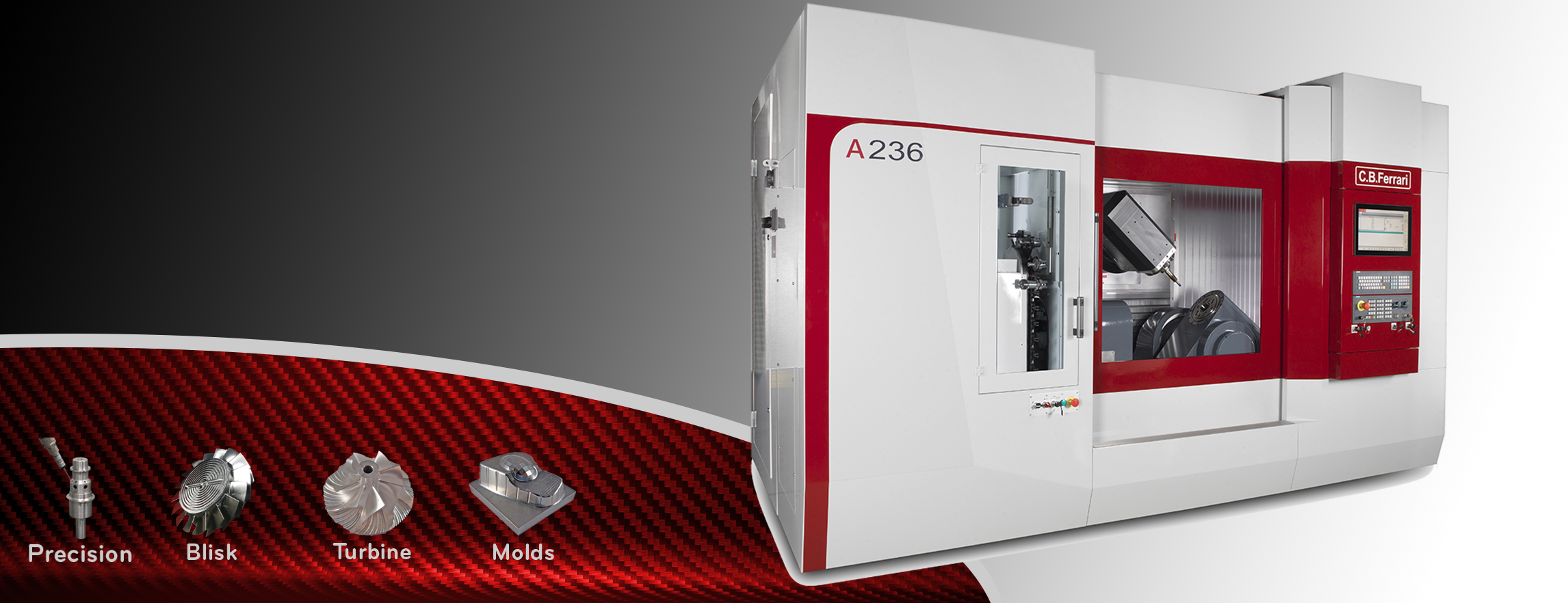The machine tool industry is increasingly geared towards state-of-the-art technology in today’s digital and interconnected industrial world. In response to these trends, C.B. Ferrari is proud to present the newly redesigned A236. The A236 is a high-precision, high-productivity, high-stability, multifunction machining center with a turning option. The A236 is able to fit into a manufacturing environment both from the point of view of production and of the ability to interconnect with other factory systems. The A236 machine center’s design is perfect for producing small-medium turbine blades from a range of materials like steel, titanium, and super alloys. In addition, the A236 excels in the production of impellers, blisks, parts for the medical sector, parts for watch making, cams, special tool bodies, and other types of complex parts.